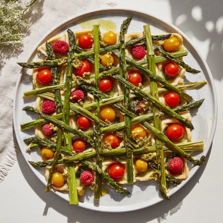 Once you understand the structure, the lattice becomes a canvas for whatever you have on hand. I've used fresh peas, thinly sliced radishes, and even tender young green beans instead of asparagus. The key is choosing vegetables that are either flexible enough to weave or sturdy enough to hold their shape. For berries, anything small and firm works—blackberries, red currants, pomegranate seeds, or even halved cherries.