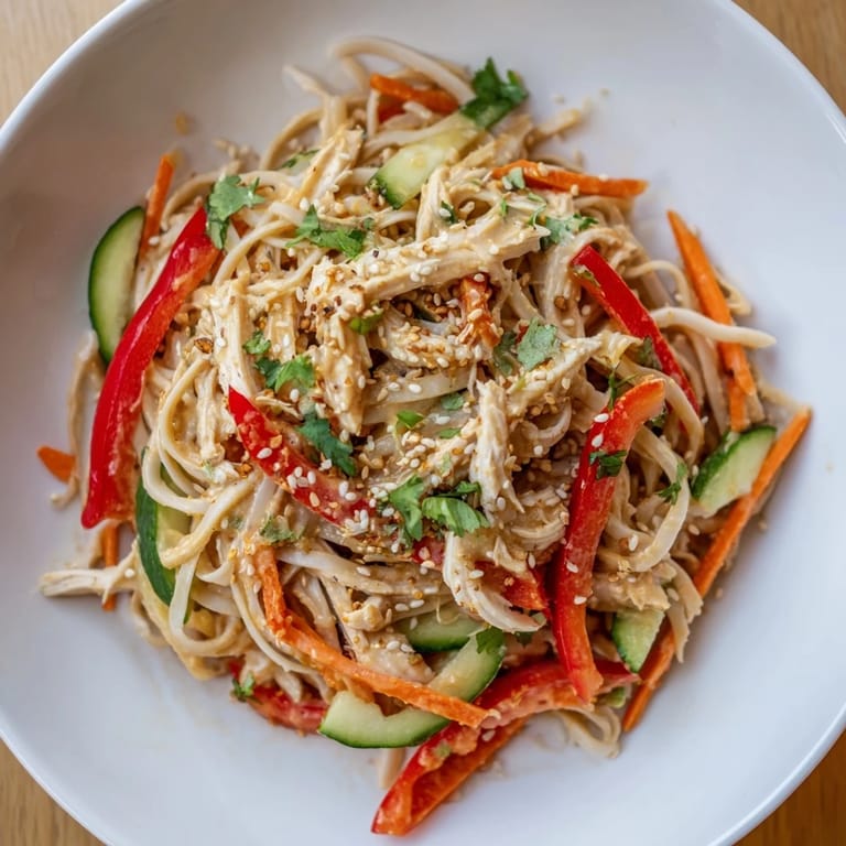 This salad is forgiving enough to adapt to what's in your kitchen, which is part of why it's become such a regular in my rotation. I've made it with rice noodles when I didn't have egg noodles on hand, with shredded tofu instead of chicken for vegetarian friends, and with whatever vegetables looked fresh at the market that week. The structure of the dressing and the noodles stays the same, so your variations always taste intentional rather than thrown together.