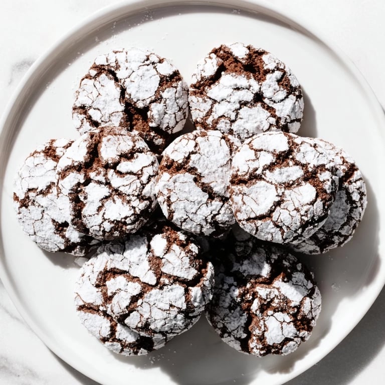 Soft, fudgy chocolate crinkles with a crackled sugar exterior and chewy inside, ideal for a sweet indulgence.