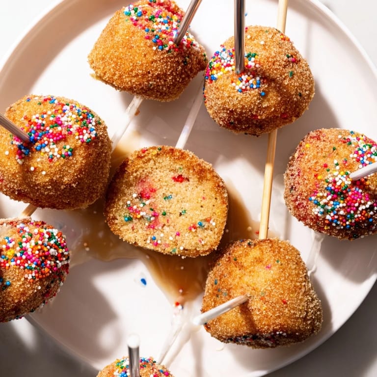Save Pin Whimsical, bite-sized muffin pops bursting with colorful sprinkles and coated in a sweet cinnamon sugar crust. Perfect for parties or a fun breakfast treat!