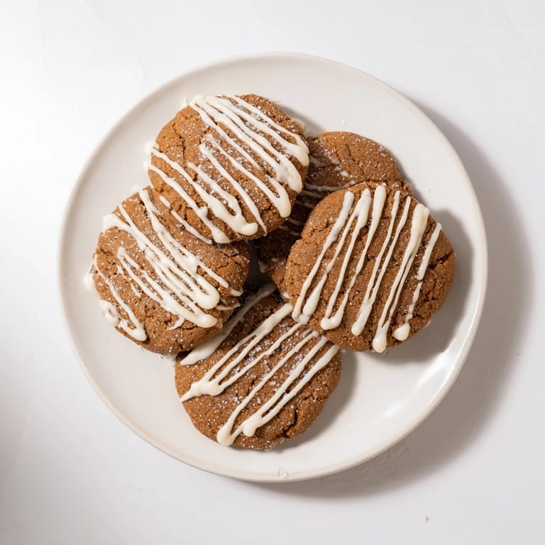Enjoy these cookies with a cup of coffee or chai for a warming winter treat. Their spiced, chewy centers and sweet drizzle make them unforgettable.