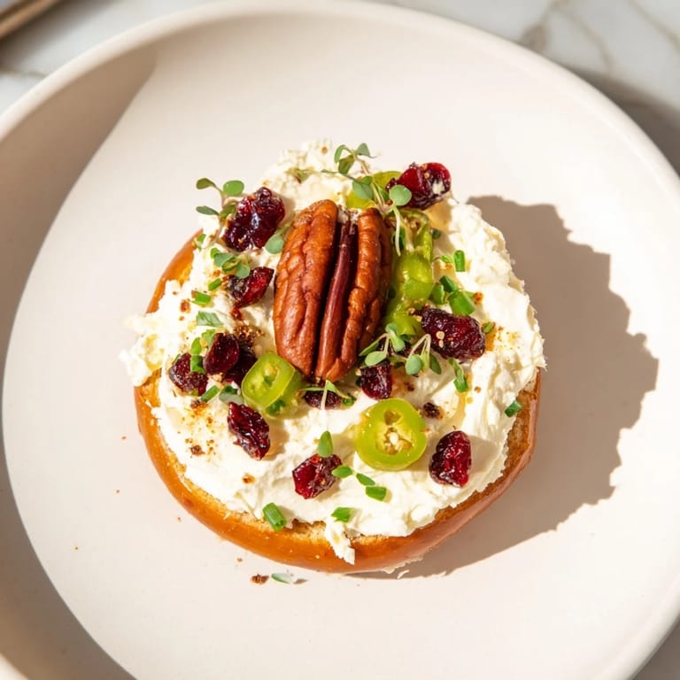 - Top each with a roasted pecan half, a sprinkle of chopped cranberries, and a pinch of diced jalapeño.