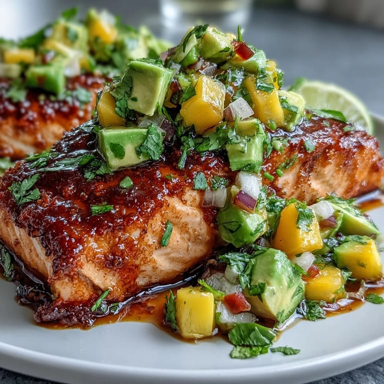 I remember sharing this salmon with friends after we all returned from a hike, sunburned and starving. The kitchen filled with laughter as I diced mangoes, and someone kept sneaking avocado cubes right off the board. When the salmon came out of the oven, everyone stopped mid-story to savor how the sweet salsa complemented the fish. We ate around the table, messy plates and all, and there wasn’t a single morsel left.