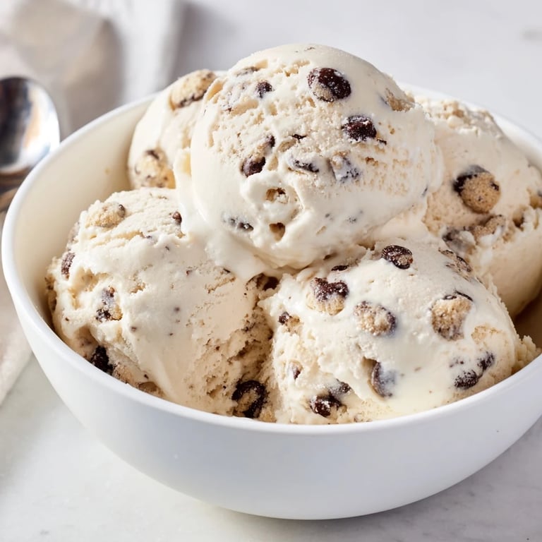 Save Pin A creamy, protein-packed ice cream featuring whipped cottage cheese and bursts of edible chocolate chip cookie dough, perfect for a guilt-free frozen treat.