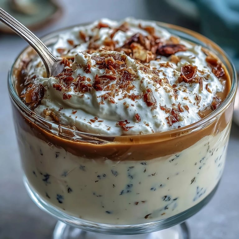 This pudding pairs beautifully with fresh berries or a light drizzle of honey to complement the roasted notes. Each serving contains approximately 210 calories, 12g of fat, and 7g of protein. Serve chilled for the best experience.