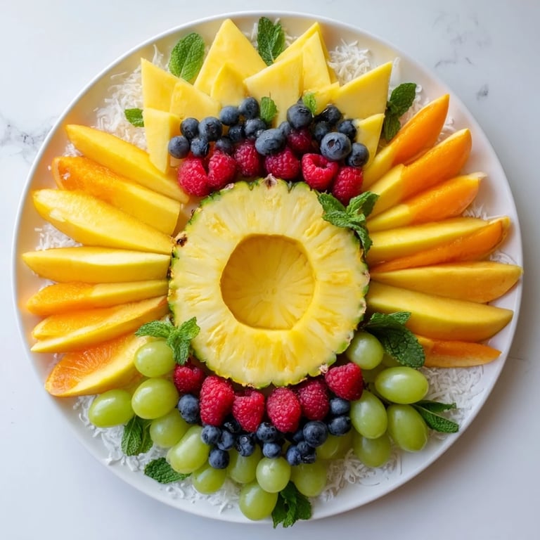 This sun-shaped fruit tray is both visually stunning and nutritious, perfect for any warm-weather gathering.