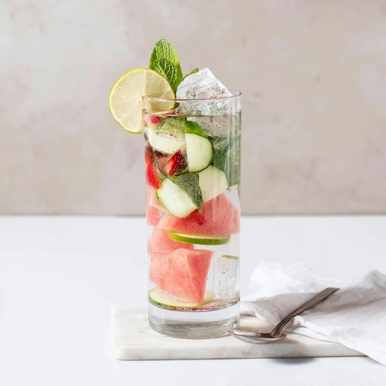 Mix fruit, herbs, and flavored water for a crisp, hydrating beverage ready in minutes. Perfect for any season.